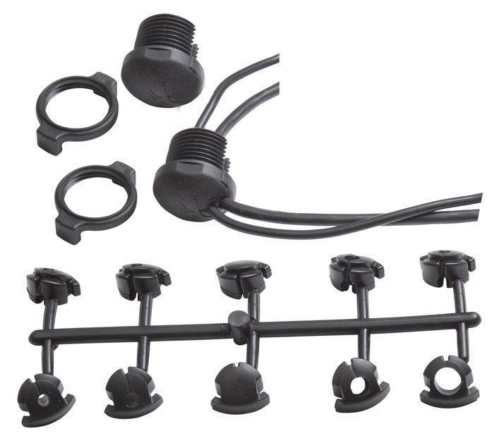 The kit includes one three way through hull fitting which can work with a variety of wire shapes.